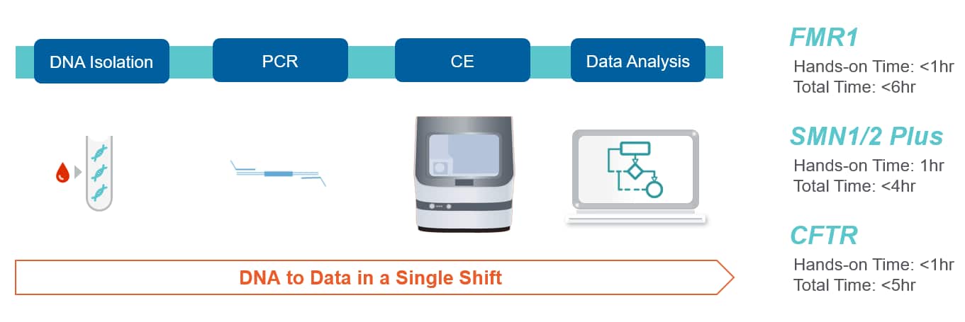 Efficiently analyze CFTR, SMN1/2, and FMR1 using PCR & CE.